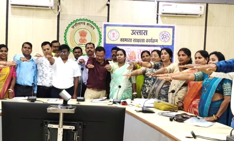 महासमुंद / मुख्य कार्यपालन अधिकारी जिला पंचायत एवं उपाध्यक्ष जिला साक्षरता मिशन प्राधिकरण श्री हेमन्त नंदनवार की अध्यक्षता में आज सुबह 10ः00 बजे से जिला पंचायत भवन महासमुंद में उल्लास नवभारत साक्षरता कार्यक्रम के सफल क्रियान्वयन हेतु जिला स्तरीय मास्टर ट्रेनरों का एक दिवसीय उन्मुखीकरण कार्यशाला का आयोजन किया गया। जिला शिक्षा अधिकारी  श्री विजय कुमार लहरे द्वारा राष्ट्रीय शिक्षा नीति 2020 के तहत उल्लास नवभारत साक्षरता कार्यक्रम के सफल क्रियान्वयन समय-सीमा में किए जाने हेतु निर्देशित किया। उक्त प्रशिक्षण में श्री कमलनारायण चंद्राकर जिला परियोजना अधिकारी जिला साक्षरता मिशन प्राधिकरण ने नवसाक्षर व स्वयंसेवी अनुदेशकों की सूची 2025-26 का लक्ष्य विकासखंडवार, लक्ष्य के विरुद्ध पोर्टल में प्रविष्टि की संख्या,. पोर्टल में प्रविष्टि हेतु शेष संख्या, स्थानांतरण से प्रभावित स्कूल यूजर व सर्वेयर की जानकारी, 2025-26 हेतु वास्तविक लक्ष्य संख्या, विकासखंडवार केंद्र संख्या, सितंबर 2025 में परीक्षा में शामिल होने हेतु लक्ष्य संख्या, मार्च 2026 में परीक्षा में शामिल होने हेतु लक्ष्य संख्या, नव साक्षरों हेतु उल्लास केंद्र में प्राप्त पुरानी उल्लास प्रवेशिका की जानकारी, आदर्श उल्लास केंद्र का नाम विकासखंडवार, उल्लास केंद्र संचालन की जानकारी, ‘‘सड़क सुरक्षा जीवन रक्षा‘‘ वाद विवाद प्रतियोगिता के संबंध में जानकारी प्रदान की।